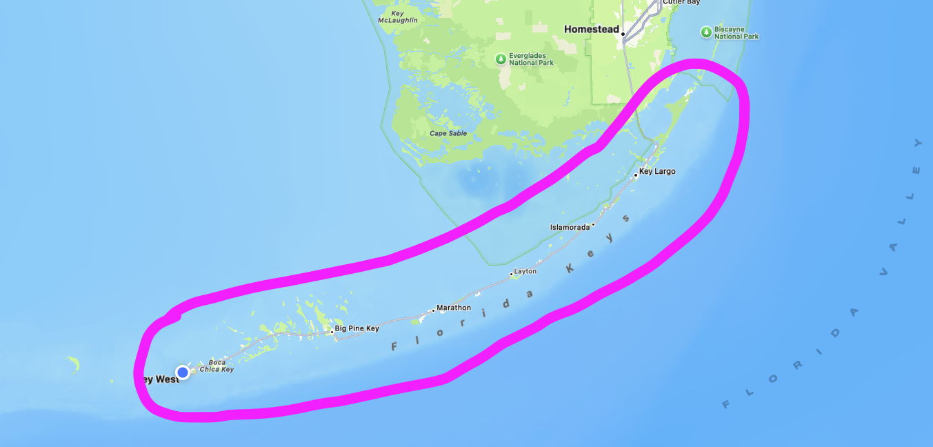 If your boat lives in this purple shape, we come to you. Key West to Key Largo.